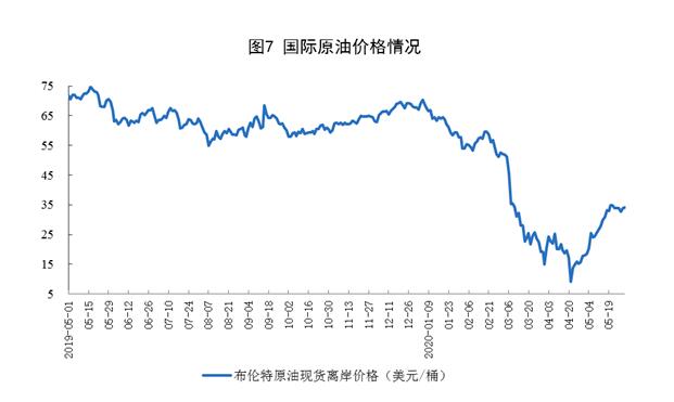 原油进口由降转增,国际原油价格快速回升。5月份,进口原油4797万吨,同比增长19.2%,上月为下降7.5%。1—5月份,进口原油21558万吨,同比增长5.2%。5月29日布伦特原油现货离岸价格为34.15美元/桶,比4月30日的18.11美元/桶回升88.6%。