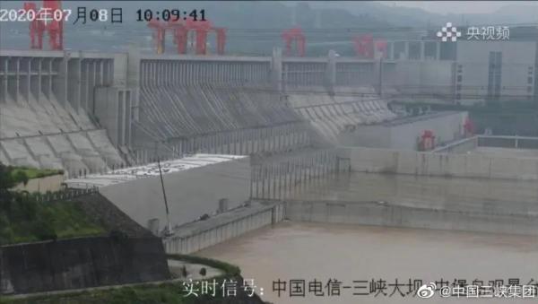 2020年7月8日,三峡大坝实时图像信号。 微博@中国三峡集团 图