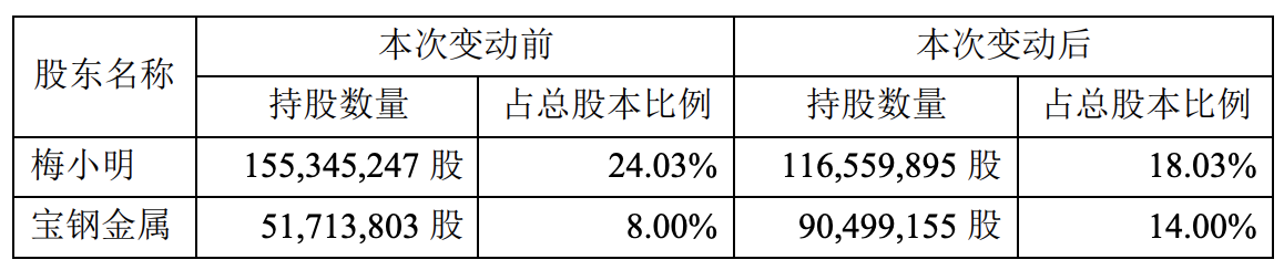 8月11日,南京云海特种金属股份有限公司(002182,下称“云海金属”)公告披露,当天,公司收到控股股东、实控人梅小明通知,梅小明与宝钢金属有限公司(下称“宝钢金属”)签署了《股份转让协议》。