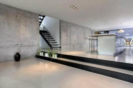 3. 水泥自流平特点是耐用度高,易维护,与整体空间好搭配等等,也能让人眼前一亮不拘一格。近些年慢慢出现在住宅类空间,多是一些厌倦了地砖、地板的千篇一律,或追求简单富有质感的需要,尤其适合一些小面积或不规则的空间,能得到整体统一的视觉效果。