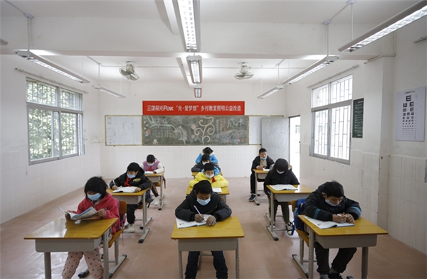 这次得到三雄极光公益改造的古母水中心学校地处于韶关市,位于粤北的重重大山之中,受自然因素影响,成为粤北脱贫攻坚主战场之一。所谓扶贫先扶智,教育是阻断贫困代际传递的根本之策。三雄极光“光爱梦想”公益计划,不再停留在简单的物质捐赠,而是利用自身技术和产品优势,为当地学子创造健康舒适的学习照明环境,平衡教育资源、缩小教育鸿沟。