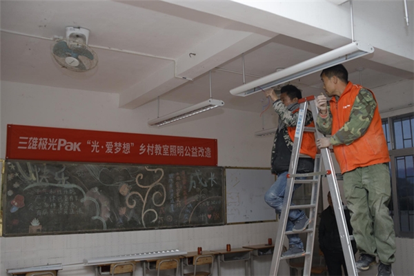 乡村教室照明的问题不仅仅是灯具残旧缺失的问题,用光意识也十分薄弱。他们大多认为“白天开灯上课是浪费资源”、“灯具还能亮就换新太可惜”,过度地关注灯具节能问题而忽略灯光健康之路。未来,三雄极光还将会走进更多偏远地区学校,打造一间又一间照明标准化教室,让当地教育工作者对教室照明设计和质量有更加深刻具体的认识。