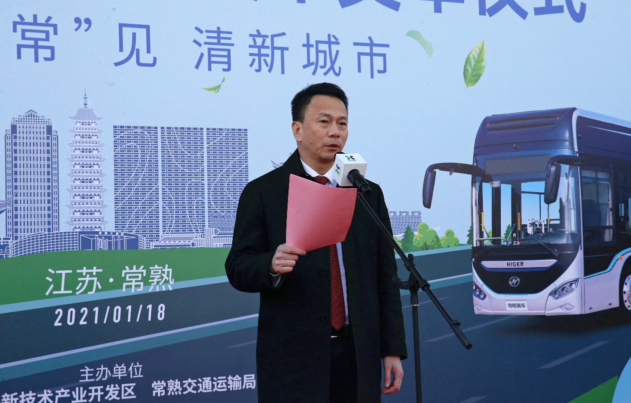 活动现场,常熟市委书记周勤第,市委常委、高新区党工委书记王建国,副市长史纲,高新区管委会副主任顾志强、蒋向阳,市交通运输局局长钱敏磊,上汽集团副总裁、总工程师、捷氢科技董事长祖似杰,捷氢科技总经理卢兵兵,苏州金龙党委书记、董事长陈笃廉,以及常熟市发改委、工信局、财政局和高新区相关部门领导出席交车仪式、参与剪彩,并一起试乘氢燃料公交。