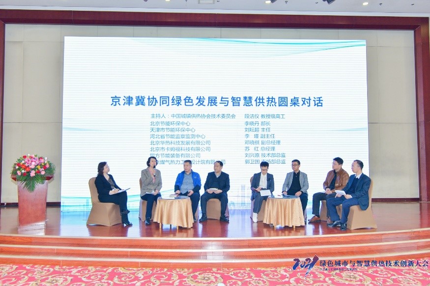 中国城镇供热协会技术委员会段洁仪主持了圆桌对话环节,邀请北京节能环保中心李晓丹部长、天津市节能中心刘耘超主任、河北省节能监察监测中心李瑾副主任和供热行业的技术专家就城市绿色发展中供热发展,节能工作在碳中和中如何发挥作用,以及推动京津冀三地更好的融合发展进行了深入的交流和讨论。