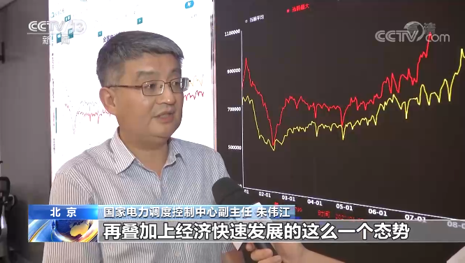 11个省级电网负荷创新高 全国日用电量在7月14日刷新了历史纪录,达到271.87亿千瓦时,比去年夏季的最高值增长超过了10%,比今年年初的极端寒潮天气情况下用电量增长也超过了4.7%。 国家电力调度控制中心副主任 朱伟江:主要是受天气因素的影响,再叠加上经济快速发展的这么一个态势,所以造成了7月中旬以来用电负荷有一个明显的上升,也就是第一波高峰的到来。