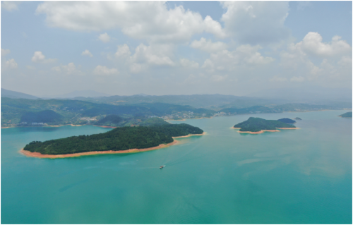 凤凰顶上,远望那美妙绝伦的湖光山色,清澈的水域映照着湛蓝的天空,这也许就是古人所说的,山水共长天一色,简直美不胜收。