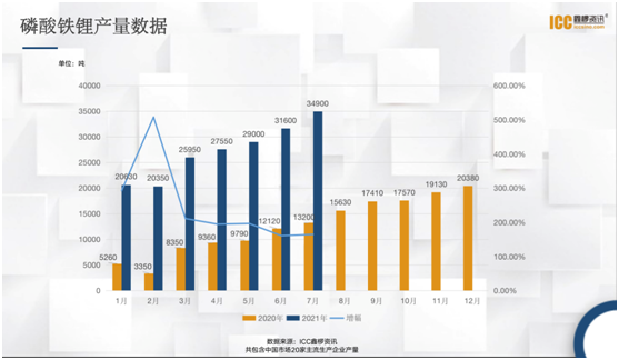 鑫椤资讯锂电研究员在近期一场直播活动上表示,由于供应相对稳定,且成本波动相对较小,磷酸铁锂成为正极市场上最被看好的材料,动力和储能两大市场将支撑旺盛需求。数据显示,磷酸铁锂在2020年产量为15.1万吨,今年1-7月突破19万吨,预计今年全年将超过40万吨。