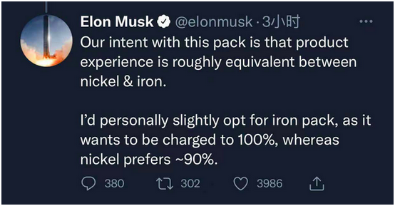 马斯克偏爱磷酸铁锂