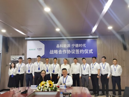 8月31日,晶科能源股份有限公司(简称“晶科能源”)与宁德时代新能源科技股份有限公司(简称“宁德时代”)在福建宁德签订战略合作协议。晶科能源首席执行官陈康平、副总裁钱晶、副总裁王发万,宁德时代总裁周佳、首席客户官&储能事业部总裁谭立斌、储能业务部总经理朱岩松等领导出席本次签约仪式。