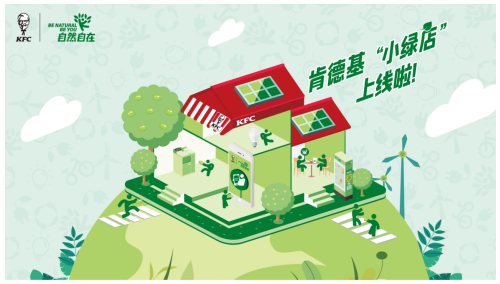 肯德基 “小绿店”在2022年4月于线上线下同时推出,以“绿色减碳”为纽带联动数字世界与现实生活,相辅相成,创新践行肯德基“自然自在”可持续发展理念,也从多维度带动消费者节能减碳的生活方式,和肯德基一起自然自在。