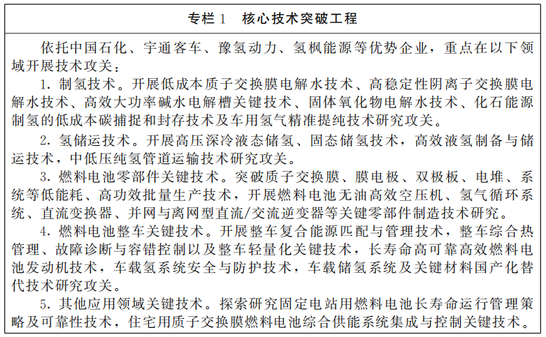 (一)创新驱动实现技术突破。聚焦氢能重点领域和关键环节,坚持自主研发与引进吸收相结合,构建多层次多元化创新平台,深化产学研合作,引进培育人才,加大技术攻关力度,在核心技术和关键材料领域实现突破。