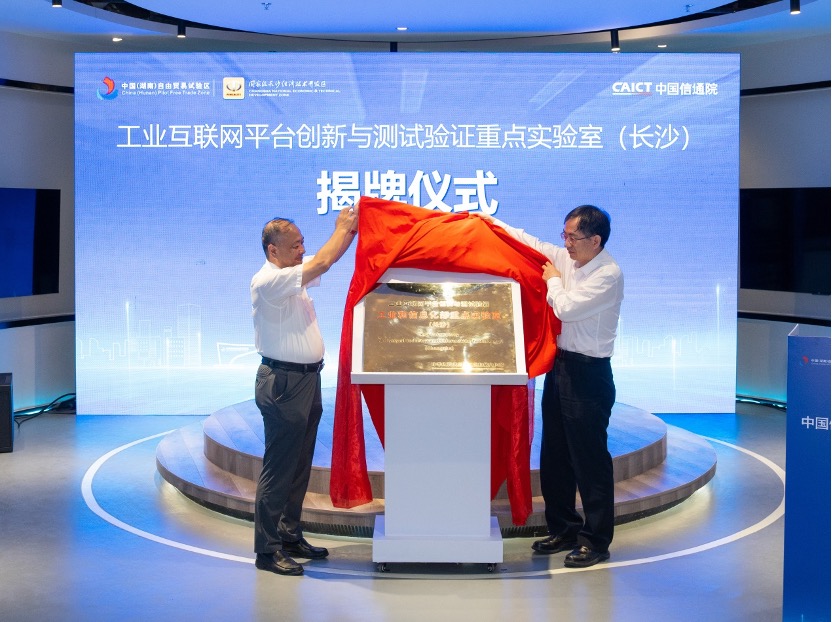 现场,余晓晖、张庆红共同为工业互联网平台创新与测试验证重点实验室(长沙)揭牌。这是长沙经开区与中国信通院进一步深化战略合作的崭新成果,也是首个成立的区域分支实验室,旨在打造涵盖应用示范、技术创新、资源协同、产业服务的多功能创新载体,赋能区域数字化转型。