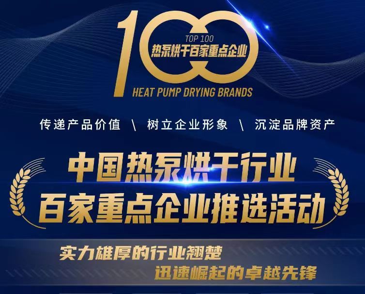 2023年7月30日,由中国节能协会热泵专业委员会支持、《热泵》杂志承办“2023中国热泵烘干行业百家重点企业推选活动”,经来自权威科研院所、知名院校、检测认证机构、标准制定组织、行业协会等部门的专家组成评审组评审,《2023中国热泵烘干行业百家重点企业》榜单正式对外发布。60家热泵制造厂家、23家烘干系统集成商、17家配件配套企业榜上有名。
