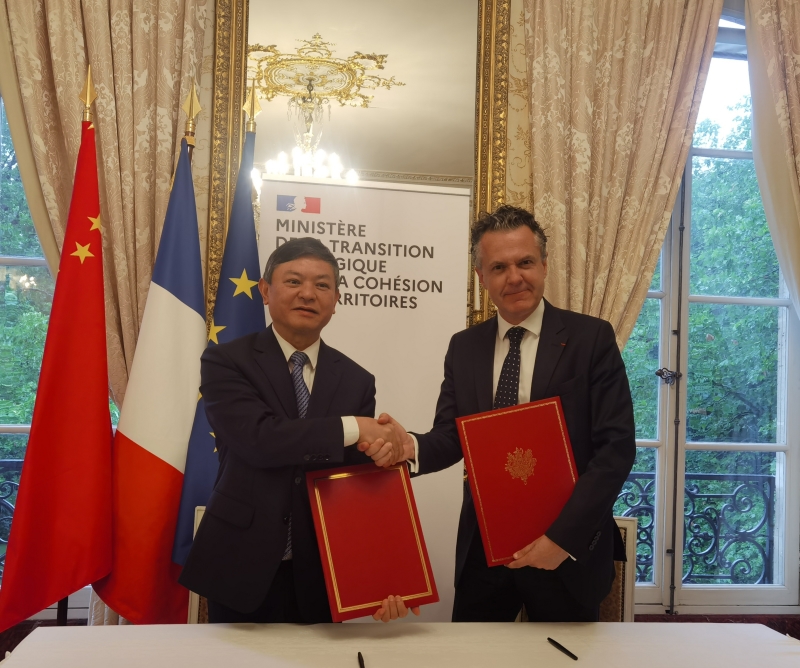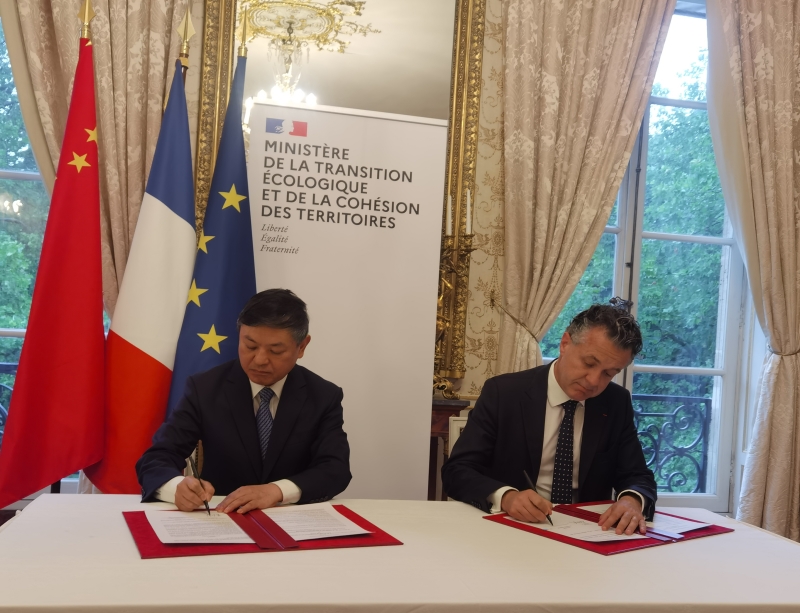 当地时间6月22日上午,在陪同国务院总理李强访法并出席新全球融资契约峰会期间,生态环境部部长黄润秋在巴黎与法国生态转型和国土协调部部长贝丘举行双边会谈。双方围绕中法生态环境合作、推动落实“昆明—蒙特利尔全球生物多样性框架”等议题进行了深入交流。双方高度肯定中法在生态环境领域合作取得的成效,表示将积极落实两国领导人共识和中法联合声明,进一步深化生态环境领域交流与合作。