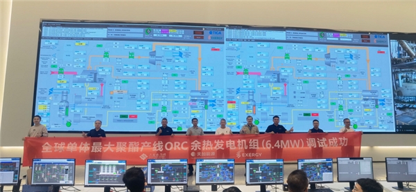 9月22日,三房巷聚酯余热发电项目落成仪式成功举行。本项目采用天加Exergy高效径向离心透平ORC发电机组,总装机为6.4MW,是全球单体最大聚酯产线ORC余热发电机组、中国最大ORC余热发电机组。