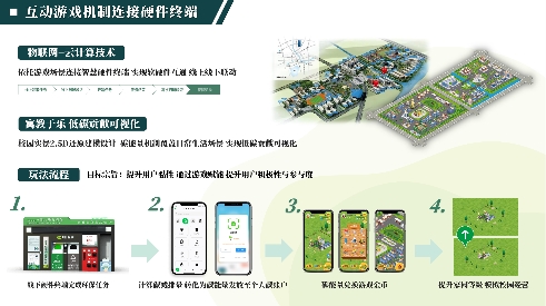 值得一提的是,“CC碳惠通”团队创新性地设计了一款名为“CC LIFE”的2.5D策略模拟经营游戏。该游戏以校园为背景,依托智能硬件终端和物联网技术,涵盖多种生活场景。用户通过在线下完成绿色出行、二手交易、节约用电等低碳行为后,平台会自动进行核算,并将核算结果以碳能量的形式发放至用户的个人碳账户。游戏界面中将实时模拟,通过发放任务促进线下设备与线上游戏的联动。用户可从线上领取任务—线下扫码激活—开始任务—任务结束—获得奖励。在游戏世界中模拟低碳行为的发生,宣传相关低碳知识,帮助用户更好地培养低碳生活的习惯,增强用户参与感。