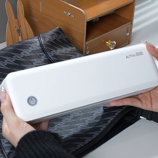 第一眼见到AiYin启锐家用便捷打印机,最直观的感受就是“小”。机身尺寸仅为传统文具盒大小,重量轻,可以轻松放入背包夹层。纯白简约的设计风格搭配圆润边角,无论是放在书桌、办公桌还是儿童书桌上都不显突兀,反而增添了几分科技美感。