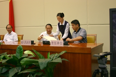会上,罗正富常务副省长代表省政府与16个州、市签订了2007年节能减排目标责任书。省经委刘绍忠主任,省环保局杨志强副局长分别作了会议发言。