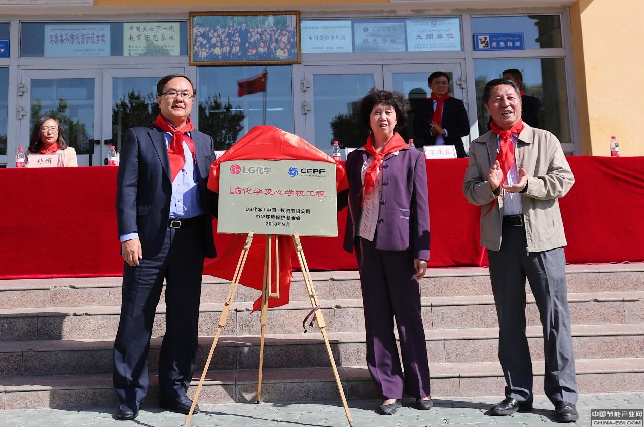 竣工仪式上,LG化学大中华区总裁朴显植、乌鲁木齐市关心下一代委员会副主任吕德祥、中华环境保护基金会新疆代表处副主任党新群致辞并共同为“爱心学校工程”揭牌。永丰中学代表向LG化学赠送了锦旗以致谢意。