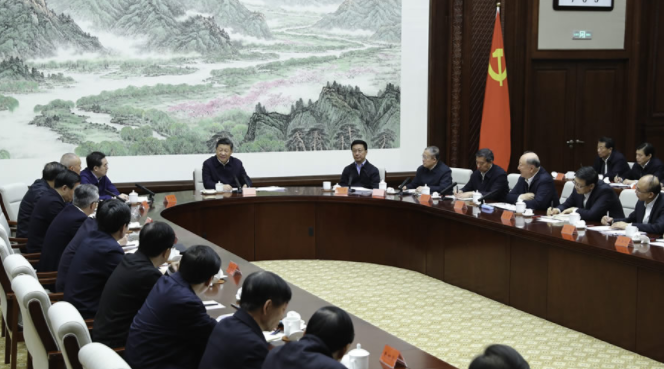 在北京市委办公楼主楼会议室,习近平主持召开京津冀协同发展座谈会。国家发展改革委主任何立峰、北京市委书记蔡奇、天津市委书记李鸿忠、河北省委书记王东峰先后发言,就京津冀协同发展介绍工作情况、提出意见建议。
