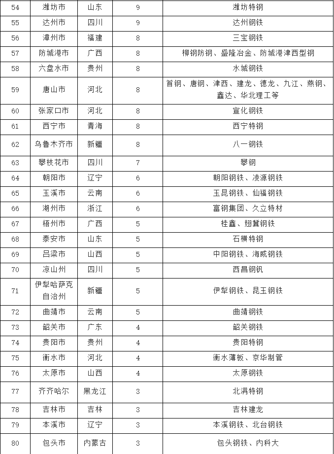 各大钢企所在地疫情统计表(附部分代表钢企)