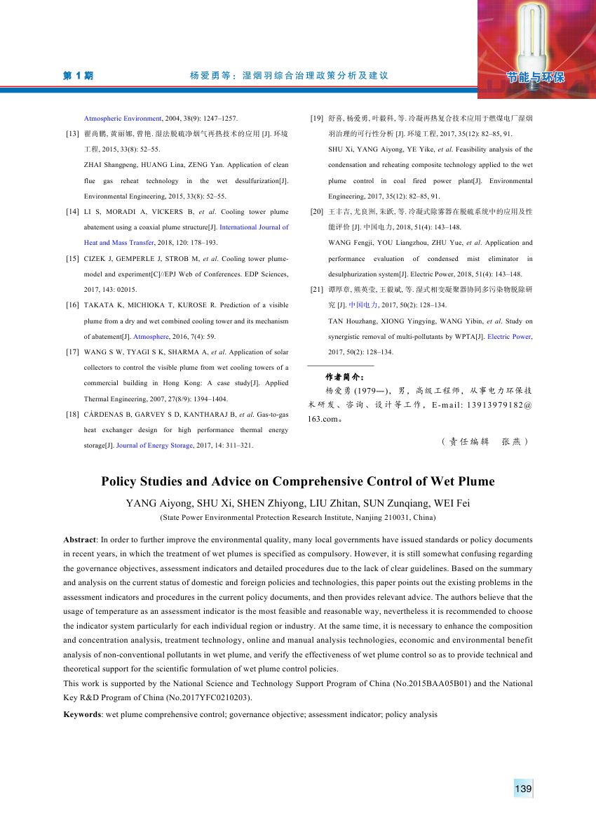 为进一步改善环境质量,近年来多个地方政府相继出台了标准或政策文件,要求对湿烟羽进行治理。各地政策对于治理目标、考核指标及考核方式存在一定的混乱,缺乏清晰统一的标准。对现有国内外政策及技术现状进行总结和分析,提出目前政策文件中考核指标和方法中存在的问题,并给出了相关建议,认为目前阶段采用排烟温度作为考核指标具有可行性和合理性,但是建议结合区域条件、行业特征制定针对性的指标体系。同时建议加强湿烟羽中非常规污染物种类及排放浓度、治理技术、监测分析方法、治理经济和环境效益分析等方面研究,为科学制定湿烟羽治理政策提供技术和理论支持。