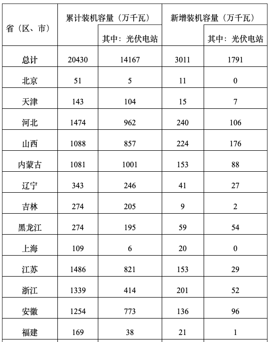从新增装机布局看,华北地区新增装机858万千瓦,同比下降24.0%,占全国的28.5%;东北地区新增装机153万千瓦,同比下降60.3%,占全国的5.1%;华东地区新增装机531万千瓦,同比下降50.1%,占全国的17.5%;华中地区新增装机348万千瓦,同比下降47.6%,占全国的11.6%;西北地区新增装机649万千瓦,同比下降1.7%,占全国的21.6%;华南地区新增装机472万千瓦,同比下降5.1%,占全国的15.7%。