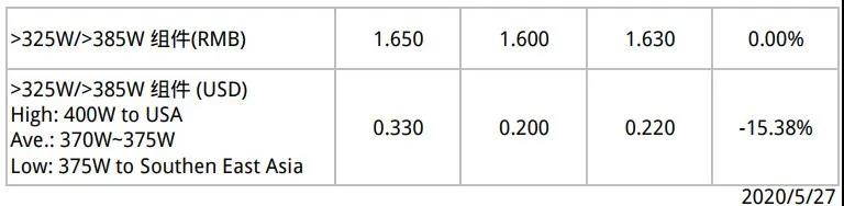 反观中国市场为2020年光伏发展预留了47GW消纳空间,随着630日期不断靠近,理应乐观看待短期内需求变化,但整体组件报价仍呈现下行趋势。主要还是因为目前的产能严重过剩,各企业为争求有限的订单,不断让价。从近期的项目开标中明显看出组件价格不断创下新低,且大尺寸硅片制成的组件中标量多,组件高效化趋势明显。