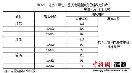 2010年,国家批复了江苏、浙江、重庆和内蒙古西部电网等4省区电力用户与发电企业直接交易试点的输配电价(见表5-1,表5-2)。