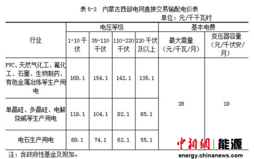从企业看,国家电网公司平均输配电价为164.97元/千千瓦时,南方电网公司为200.06元/千千瓦时,内蒙古电力公司为105.35元/千千瓦时(见表3)。