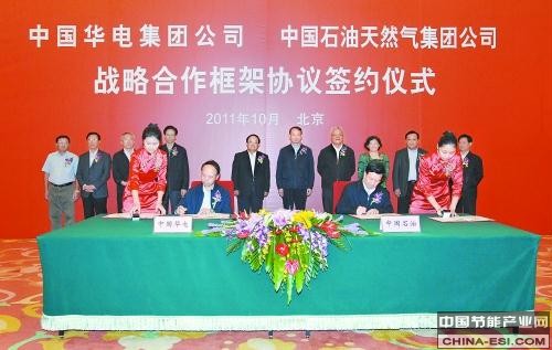 10月13日,中国石油天然气集团公司与中国华电集团公司在京签署《战略合作框架协议》。双方将进一步加强在能源领域的合作,在天然气发电项目和节能减排等方面展开合作。
