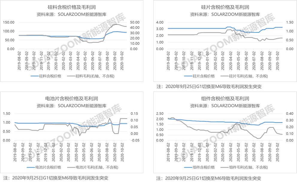 大功率组件趋势下,对M6/M10等大尺寸组件需求进一步提升。单晶M6电池确立主流地位,下游组件厂商对G1电池片压价较为明显。