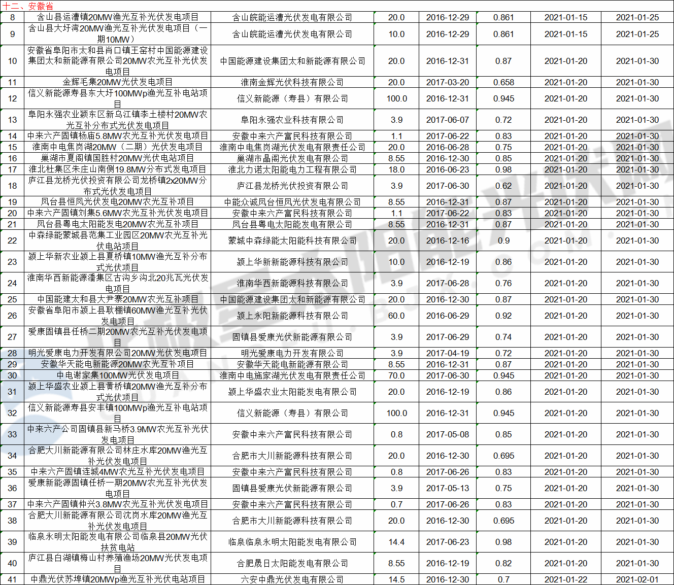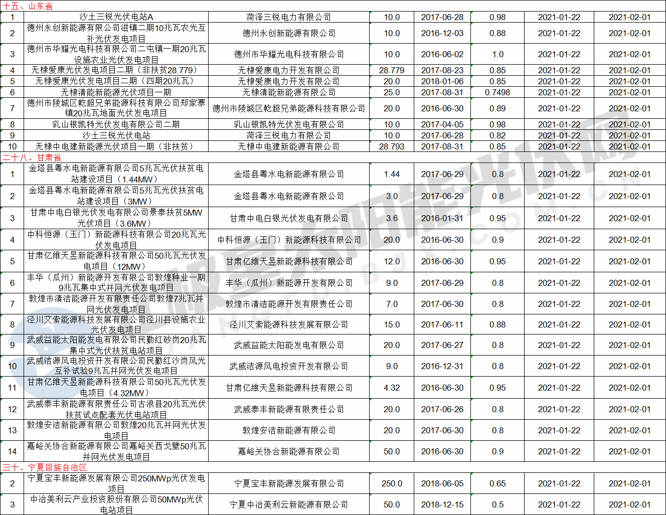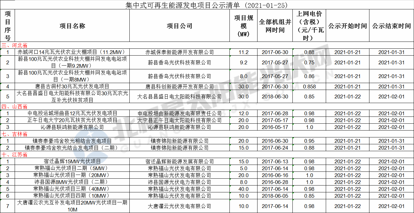 以下为本次公示清单中光伏项目部分: