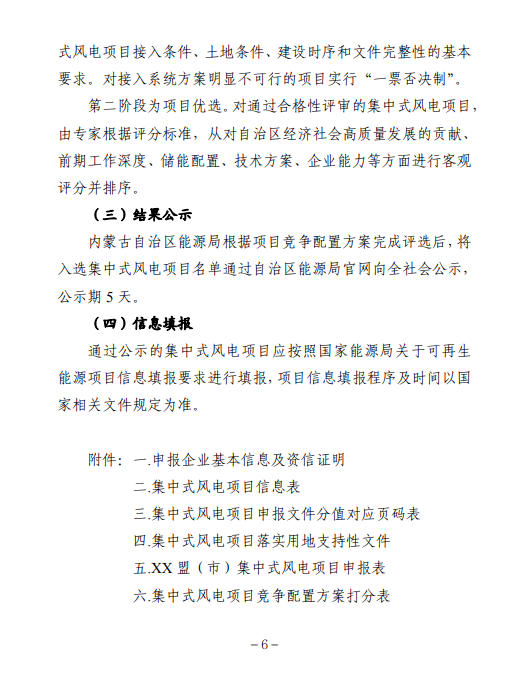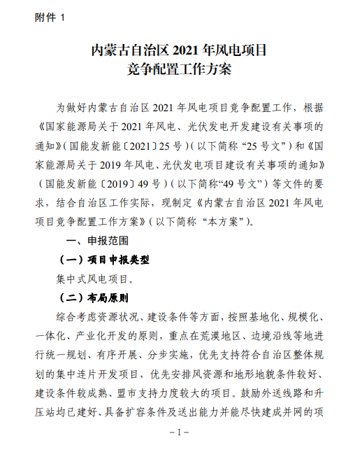 附件:1.内蒙古自治区2021年风电项目竞争配置工作方案