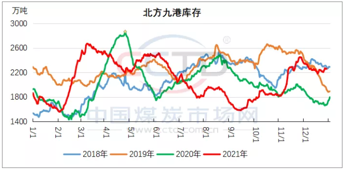 供应端,继续维持高位。产地供应虽有收缩,但在保供退出前产量同比仍将维持增长状态。中游环节,港口库存处于高位,截止12月29日,北方九港库存为2220万吨,同比增加483万吨,处于近年同期高位水平;全国主要港口库存在5000万吨左右,同比基本持平。