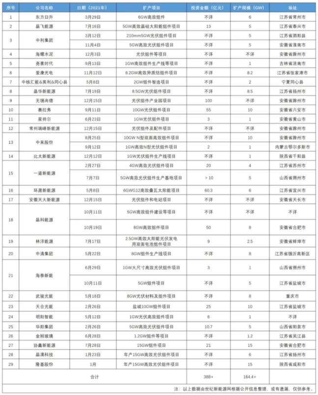 2021年,组件投资总额保守估计为388亿元,容量超164GW。