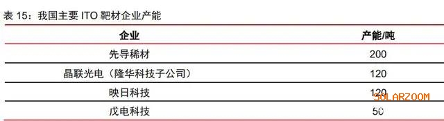 ITO 靶材以进口为主,国产替代正当时。全球 ITO 靶材市场主要供应商有日本日矿、 三井矿业、康宁、优美科等,其垄断了全球 80%的中高端市场份额和 90%的全球晶圆制 造靶材市场份额。我国ITO靶材大量依赖进口,国产ITO靶材主要集中在中低端领域, 根据华经情报网数据,2020 年市场份额仅在 30%左右。经过多年发展,目前我国形成 了一批具备 ITO 靶材量产能力的企业,市场也开始逐渐导入国产靶材,靶材进口替代进 程有望不断推进。