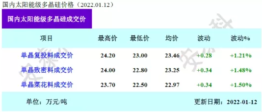 1月12日,硅业分会公布最新硅料成交价格数据!