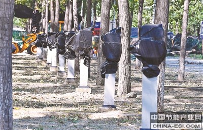 报道刊发后,蟹岛东门充电桩全部包上了黑色塑料袋
