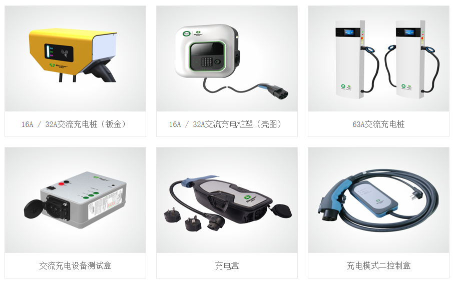 巴斯巴携新能源汽车充电系统,包括交流充电桩、交流充电桩塑、交流充电设备测试盒、充电盒、充电模式二控制盒。