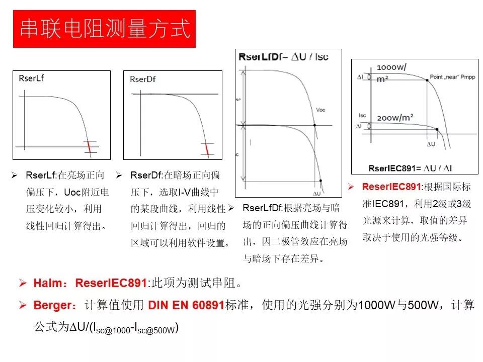 作为半导体器件,其在Isc附近的曲线符合电流源特性,在Voc附近的曲线符合电压源特性,因此以Isc附近曲线斜率倒数作为并联电阻Rsh,以Uoc附近曲线斜率倒数作为串联电阻Rs。