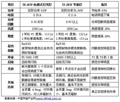 T8-40W 电流0.315A 功率因数0.54    T5-28W 电流0.107A 功率因数0.99