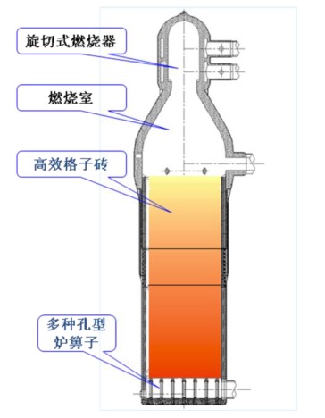图1 旋切式高风温顶燃热风炉示意图