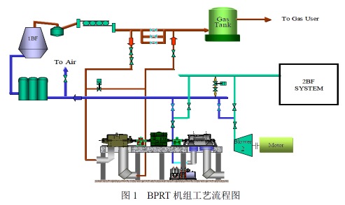 煤气透平与电动机同轴驱动高炉鼓风机技术(BPRT)创新性地提出了煤气透平和高炉鼓风机同轴的技术解决方案。由于煤气透平和高炉鼓风机都是旋转机械,用煤气透平直接驱动高炉鼓风机,将两台旋转机械装置组合成一台机组,既能向高炉供风,又能回收煤气余压、余热。BPRT机组兼备两套机组的功能,又使原有的庞大系统简化合并,取消发电机,合并自控、润滑油、动力油系统等,并将回收的能量直接补充到轴系上,避免能量转换的损失,可提高装置效率,减少环境污染和能量浪费,稳定炉顶压力,改善高炉生产条件,降低产品成本。
