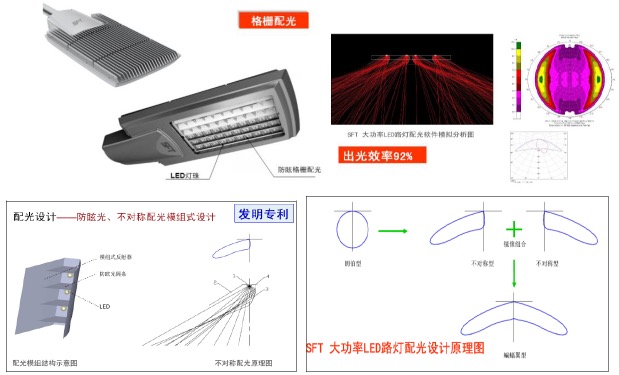 该是通过全新的格栅配光/反射杯和透镜的光学设计降低灯具的眩光,以实 现人体舒适的道路照明效果,其关键技术如下: