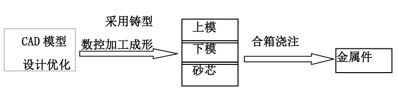 数字化无模铸造精密成形技术是一种全新的铸型制造方法。铸型制造是砂型铸造的关键工艺,决定铸件的质量和开发速度。本技术基本原理为:首先根据铸型三维CAD模型进行分模,并结合加工参数进行砂型切削路径规划;对规划好的路径模拟仿真,确保不会发生刀具干涉和砂型破坏;将砂坯置于加工平台上加工,产生的废砂被喷嘴吹出的气体排除。最后将加工的砂型单元砍合组装成铸型、浇注,得到合格金属件。不需要木模(金属模)等模具多工序翻制砂型,不需要拔模斜度和工艺补正量,减少了零部件设计中加工余量,节约了木材和金属消耗、降低了铸件能耗,实现了铸型设计、加工、组装过程数字化及工艺模拟和铸型数字化制造的无缝连接,实现了铸件生产的数字化、精密化、柔性化、自动化、绿色化。