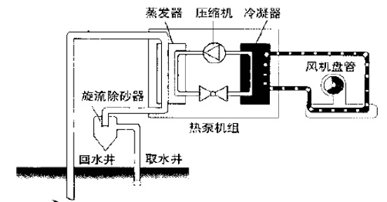 利用地球表面浅层水源,如地下水、河流和湖泊中吸收的太阳能和地热能而形成的低温低位热能资源,并采用热泵原理,通过少量的高位电能输入,实现低位热能向高位热能转移的一种技术。在夏季将建筑物中的热量转移到水源中,由于水源温度低,所以可以高效地带走热量,而冬季,则从水源中提取能量,由热泵原理通过空气或水作为载冷剂提升温度后送到建筑物中。