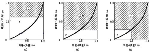图2.2(a)为采用第一种方法时的特性 ,管路的节流阻力改变时,可以得到所需的送风特性。图2.2(b)为调速情况下风机的运行特性图中(pu)均采用标么值。