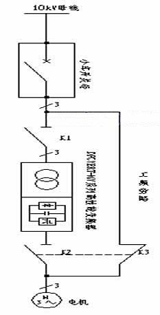 为了充分保证系统的可靠性为变频器加装了工频旁路装置,当变频器故障时变频器停止运行电机可以直接手动切换到工频运行同时不会影响对变频器的检修如图4.1所示。