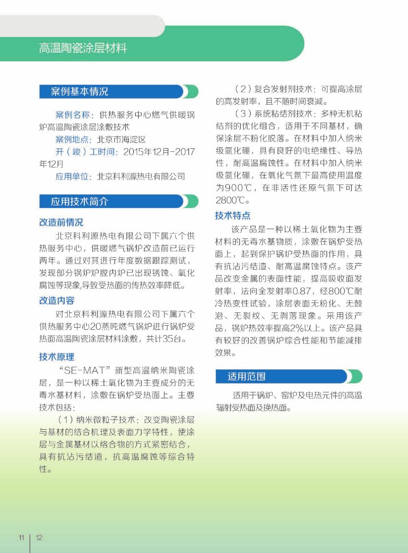 该产品是将稀土氧化物为主要材料的无毒水基物质涂敷在锅炉受热面上,起到保护锅炉受热面的作用,具有抗沾污结渣、耐高温腐蚀特点。该产品改变金属表面性能,提高吸收面发射率,在 800 度耐热变性试验下涂层表面无粉化、无鼓泡、无裂纹、无剥落现象,锅炉热效率提高 2%以上。